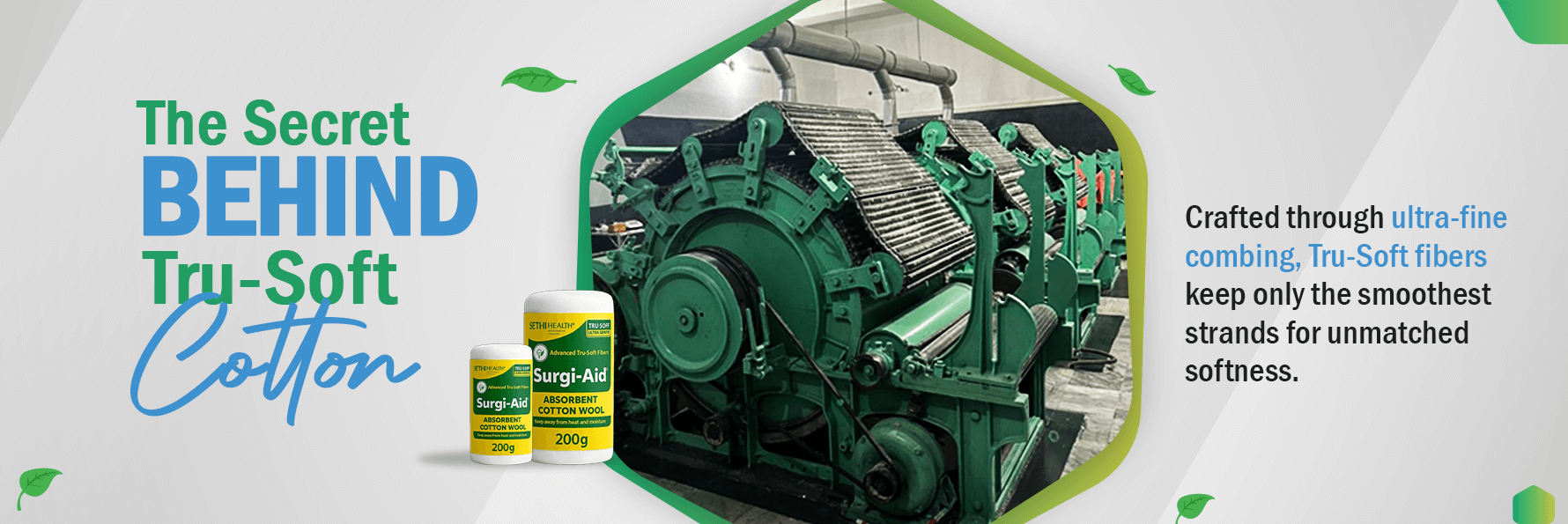 High-quality, soft cotton for medical use and wound care. Gentle on skin and highly absorbent for effective cleaning.